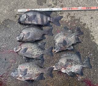 | 2025年度太師会 年間大物の賞 (現在) 石鯛の部 1位 7月9日 カツオ島 石鯛 65,0cm 新宮市 杉下氏 ![]() 2位 1月19日 沖ノ大島 石鯛 59,0cm 上富田町 梅本氏 ![]() 3位 9月14日 イガ島 石鯛 51cm 三重県 坂本氏 ![]() グレの部 1位 1月16日 オシャ島 グレ 47cm 藤井寺市 吉田氏 ![]() 2位 3月13日 内磯 グレ 47cm 大東市 中西氏 ![]() 3位 1月12日 沖ノ大島 グレ 46,5cm 宝塚市 斉藤氏 ![]() |